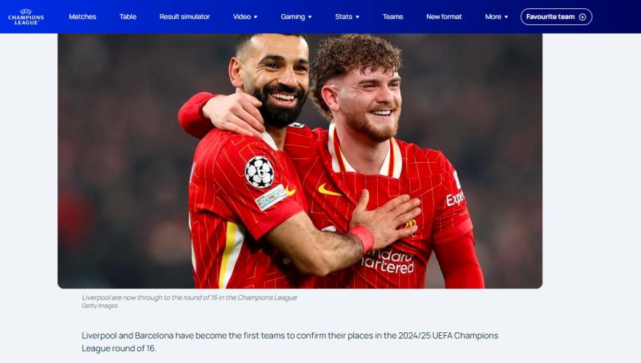 欧冠官网积分榜分析文章称,利物浦队和巴萨确定晋级16强。
